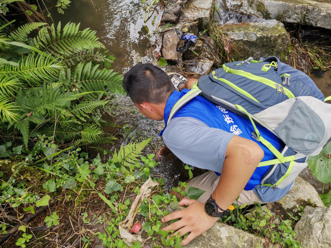 7月18日,苗岭生态在龙滩河水库举办乐水黔行第四十五期活动,参与本次活动人员有10人,其中包括苗岭生态主任杨再春、驻村志愿者林艳斌和肖小胜、实习生李馥练和邹莎莎以及4名凯里市志愿者和1名排楼村志愿者(排楼寨组长)。本次活动,我们将沿途的农药废弃物进行清理、采集水生态廊道拟构建区域的水样和土样、拍摄了拟构建区域的航拍图片;在行走过程中,排楼组长帮助我们对排楼区域荒田主人及亩数的确定,为后续征地流转提供便利。