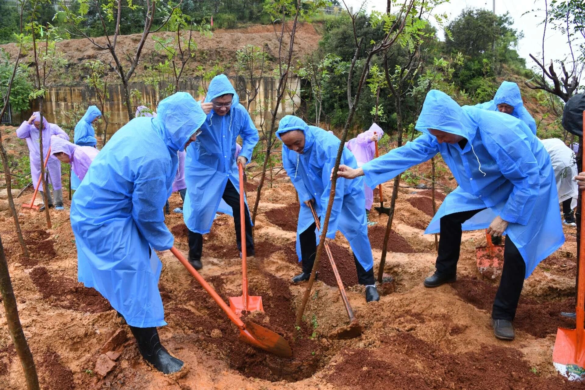 省林业和草原局段利武副局长、省绿色环境发展基金会吴霞理事长、州林业和草原局何瑞祥局长、大理市人民政府赵腾鹏副市长和随行领导在大雨中参加了纪念林植树和揭牌仪式,大理市林草局杜杨峰局长主持了此次活动。参加活动的还有州、市林草局干部职工代表,省绿色环境发展基金会职工代表,大理州山水公司职工代表和市民代表80余人。